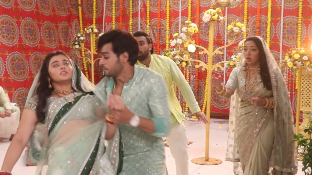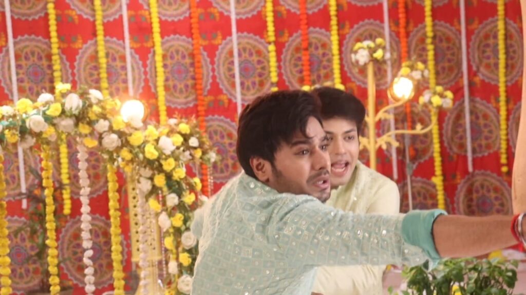 Then Ajay runs and brings something so that Ajay doesn’t get a current and he attacks on Neha’s hand so that Neha comes out of the current and after that, the Sanju here runs and saves Neha from falling and takes her in his arms.