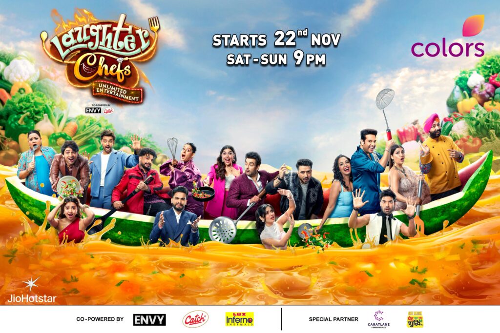 From the charismatic and fiercely competitive duo Karan Kundrra–Tejasswi Prakash, to the adorable pati-patni pair Debinna Bonnerjee–Gurmeet Choudhary, to the playful and the no-nonsense Eisha Singh–Vivian Dsena, the laugh riot is brimming with surprises. Adding to the heat, the high-voltage jodi Abhishek Kumar–Samarth Jurel is all set to dial up the macho drama. All the rules go down the sink when the explosive Elvish Yadav–Isha Malviya step in, while the mischievous Kashmera Shah–Krushna Abhishek turns into the ultimate ‘chor’ duo, stealing both hearts and snacks. And rounding off the mayhem are the OG chef and OG Gen-Z ki jodi, Aly Goni–Jannat Zubair, bringing their infectious energy to the table.  Our returning maestros, laughter queen, host Bharti Singh and Celebrity Chef Coach Harpal Singh Sokhi will roast, rate, rescue, reward and review every dish and disaster! Produced by Optimystix Entertainment, ‘Laughter Chefs Unlimited Entertainment Season 3’ Co-Powered by Envy Perfumes & Catch Masale, Pour Home Air Freshener, LuxInferno, Special Partner Caratlane and Pet Shuddhi premieres on the 22nd of November and thereafter airs Saturday – Sunday at 9:00 pm only on COLORS.